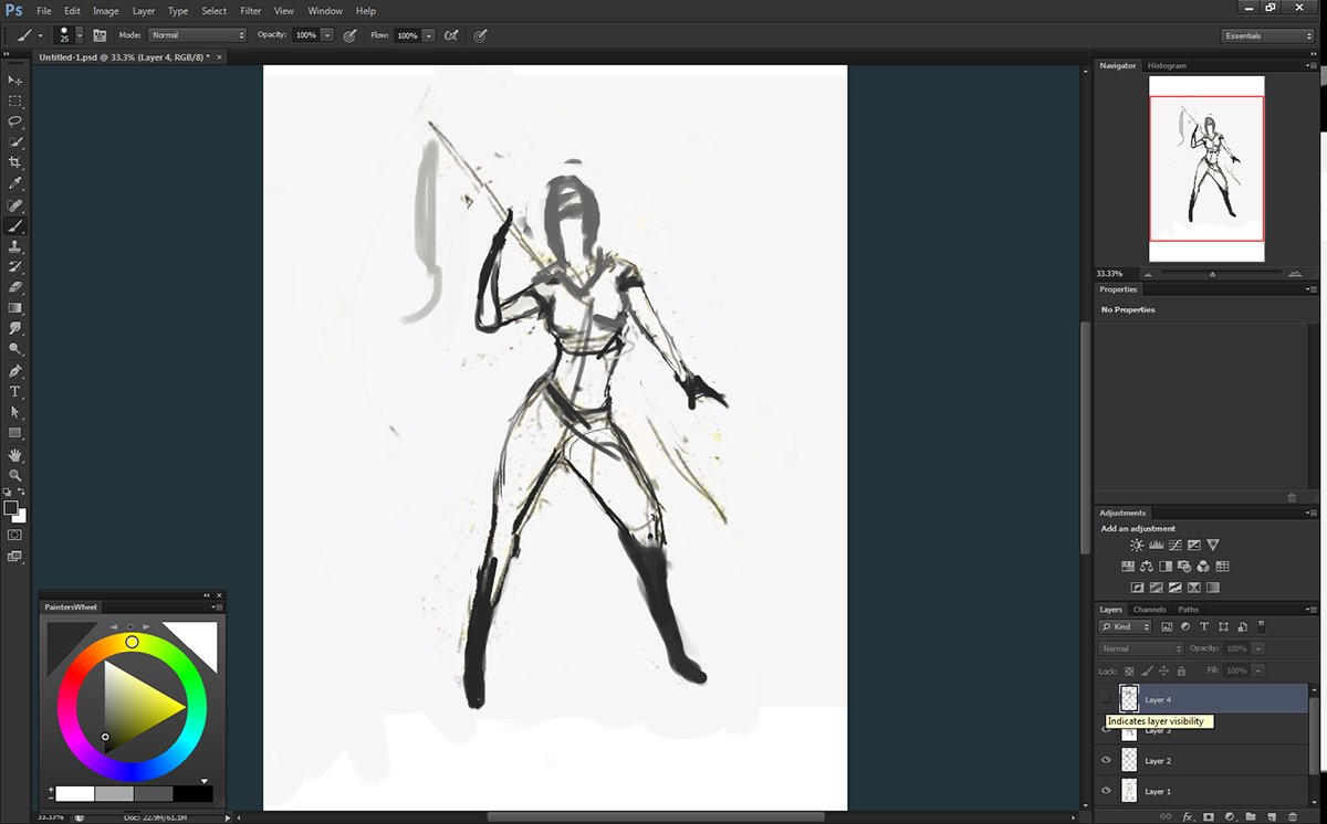 So with this other drawing the backwards woman I remembered I painted her before with greens and reds because she had a reddish tone to her skin and I wanted to play with interesting colors. In a way she was tough and had an edgy intensity as well as being a female firefighter that was on call to travel anywhere for months except the winter.